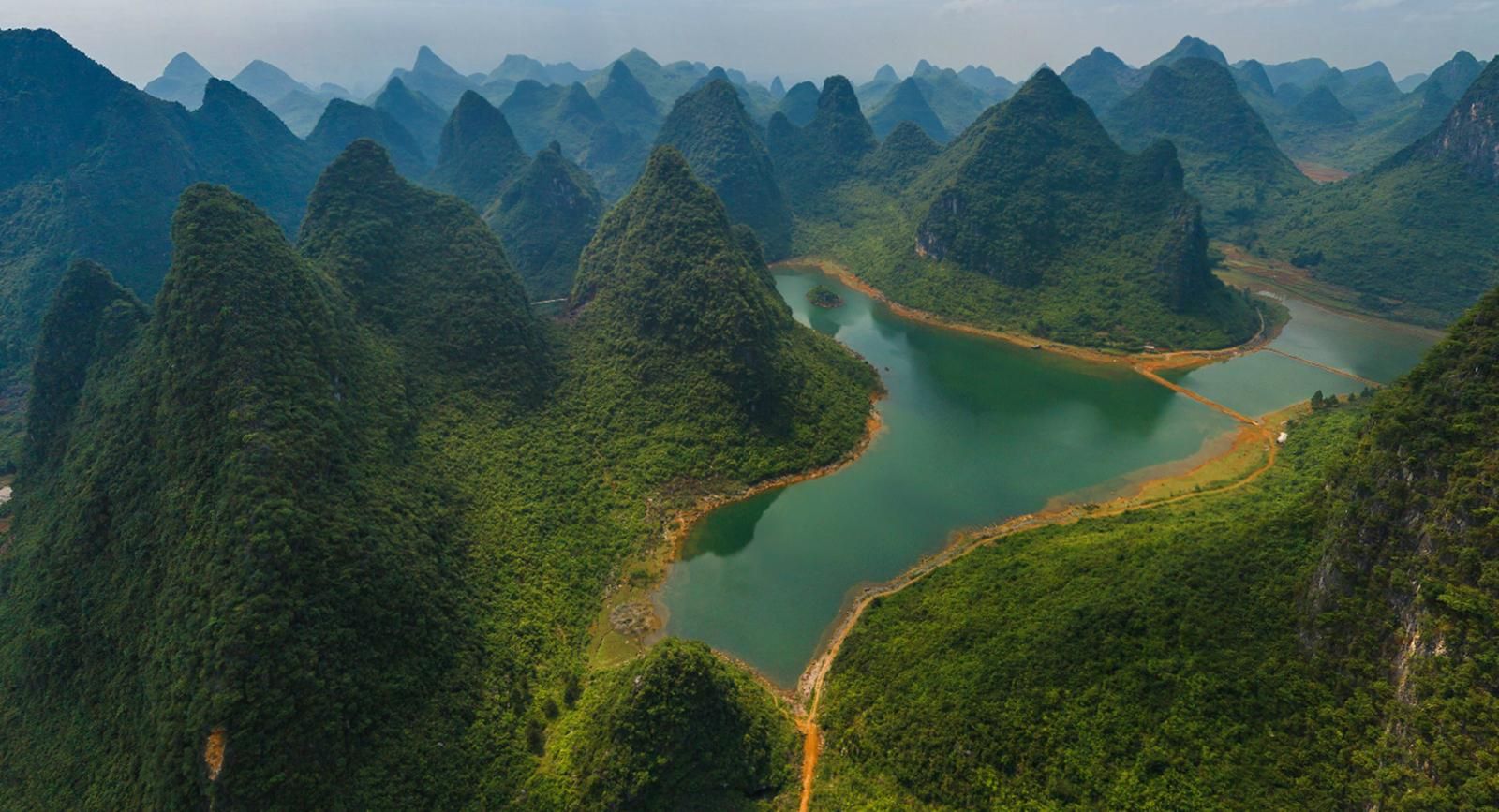 Les touristes trouvent magnifiques les collines de calcaire de Guilin.